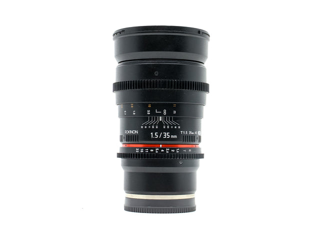Rokinon 35mm T1.5 Cine AS UMC Lens was developed primarily for film and video applications. The cine version of Rokinon's 35mm lens features industry-standard gearing for the focus and aperture ring, and the aperture ring has been de-clicked for smooth iris pulls. The aperture and focus scales have also been relocated to the side of the lens, where it is easier for focus pullers to read them.