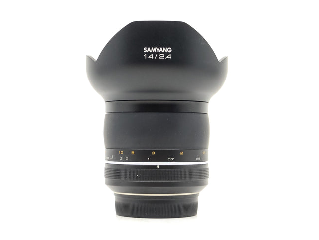 The Samyang 14mm f2.4 AE XP Lens is a premium, high-performance, manual focus prime designed for landscapes, architecture, and interior work. Its f2.4 aperture makes it a great choice for low-light conditions, and, with its 9 diaphragm blades, delivers beautiful bokeh when working with a shallow depth of field. This ultra-wide-angle lens delivers high-resolution images with edge-to-edge sharpness.